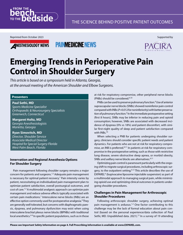 Emerging Trends in Perioperative Pain Control in Shoulder Surgery