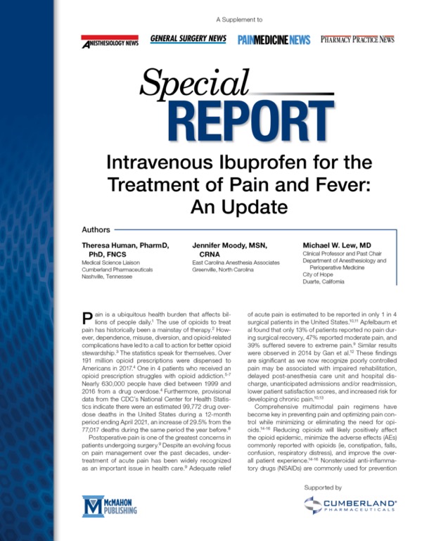 Intravenous ibuprofen (IVIB; Caldolor®) has been studied extensively in a variety of clinical areas and has ...